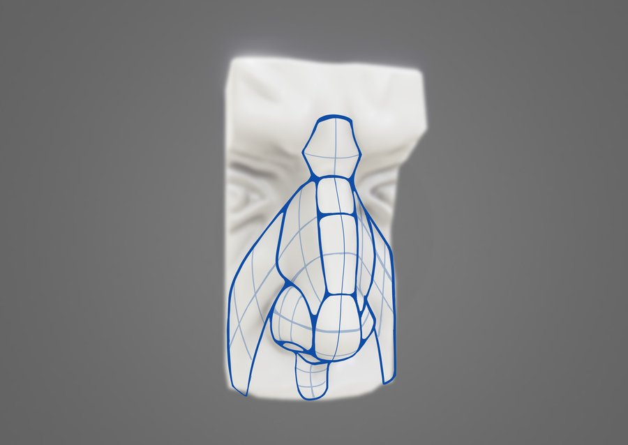 Важно не забывать время от времени подтирать конструктивные линии, что-бы не запутаться. На данном моменте у нас готова только обрубовка нашей модели — выделены лишь самые главные формы носа. Теперь добавляем те самые три сферы, формируя своеобразные шарики хрящей.