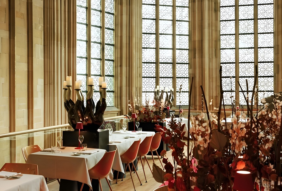 Дизайн отеля — это феерия провокаций. Исторические готические элементы спорят с модерном, эко дизайном, элементами современного искусства и юмором дизайнеров. Интерьер можно назвать во всех смыслах гиперболизированным. Дизайнером интерьера выступил Хенк Вос.