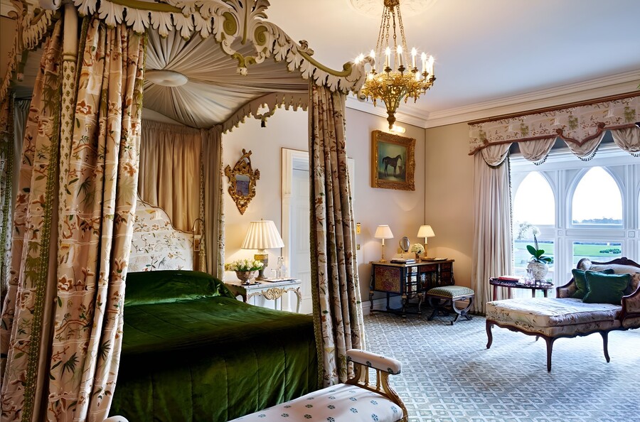 Текстиль обладает преимущественно цветочным орнаментом, флористика в каждом помещении — все это также в характере викторианского стиля. Замок переполнен предметами искусства: картинами, рыцарскими доспехами, вазами, посудой. Мебель и предметы интерьера преимущественно антикварные.