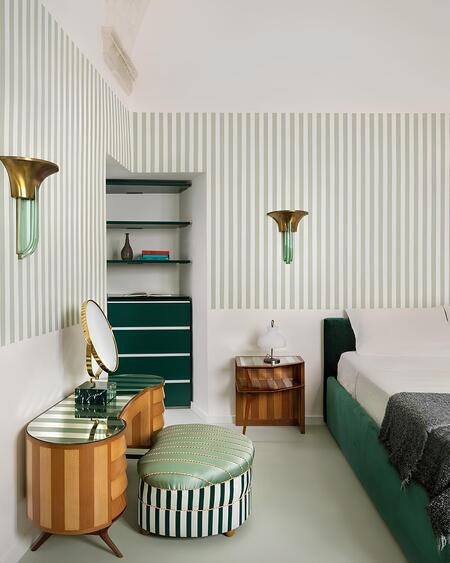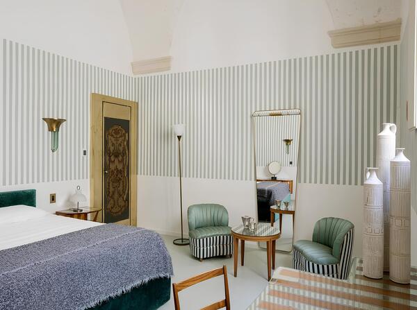 Номер люкс «Passaggi», помимо модернизма, вдохновлён ар-деко, что прослеживается в геометрических принтах, выполнен дизайнером Карло де Карли. Интересной деталью являются винтажные лампы FontanaArte 1930-х годов, которыми заполнено пространство. Номера оборудованы по последнему слову техники, но это не выбивается от общей стилистики.