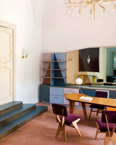 Люкс «Blue point» в своем интерьере имеет легендарную деталь интерьера — стеновую панель с полками, разработанную Понти для офиса Dulciora в конце 1940-х годов. Номер, разработанный дизайнером Джулиано дель Ува Архитетти, содержит мебель от Франко Альбини и Джо Понти. Пространство номера преимущественно разделяется цветом. Мебель во всех номерах люкс сделана на заказ.