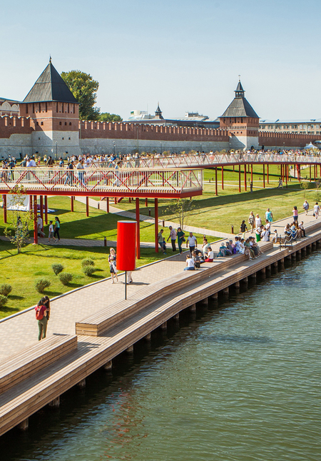 Ключевой задачей архитектурного бюро wowhouse было вернуть жителям города доступ к ранее закрытой территории и создать гармоничное благоустройство рядом с Тульским Кремлём. На берегу реки Упы была спроектирована набережная с удобным выходом к воде. Развилась портовая часть, спроектирован водный амфитеатр.