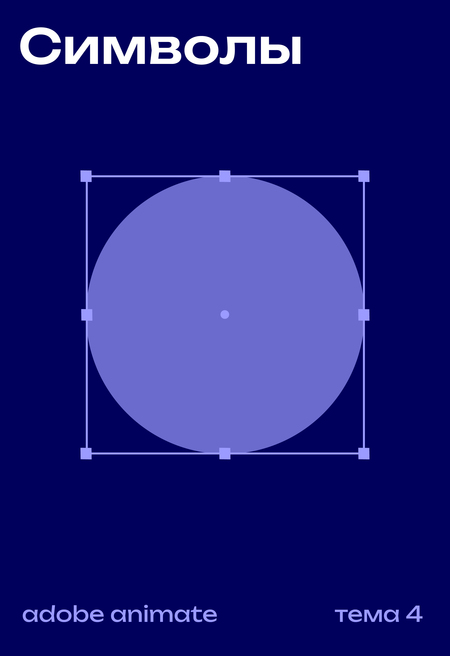 В прошлой теме мы изучили три вида перекладной анимации в Adobe Animate. Каждый из них требует конвертирования объекта в символ. Удобство символа заключается в том, что он уменьшает вес файла, а также его можно использовать повторно, взяв из библиотеки.