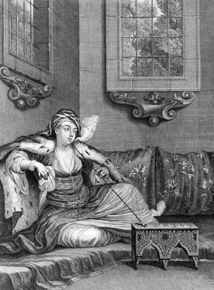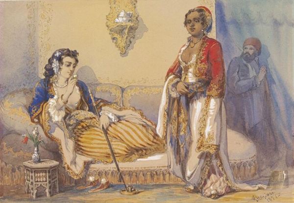1. Гравюра Ж. Скотина по рисунку Ж. Б. Ван Мур, «Константинополь: дама, сидящая на диване и курящая трубку». 1714 г. 2. Прециози Амедео, Интерьер Гарема, Турция, 1851 г.