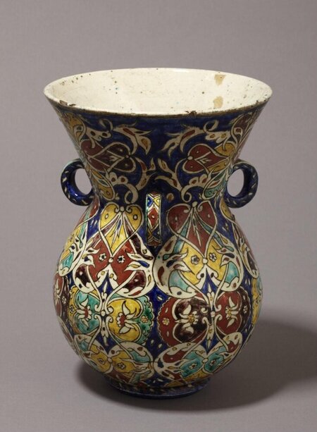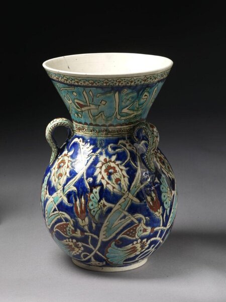 Керамические сосуды грушевидной формы использовались на Ближнем Востоке во время всего периода Среднековья. Ручки по бокам корпуса предназначены для подвешивания на цепочки и подсветки религиозных зданий.