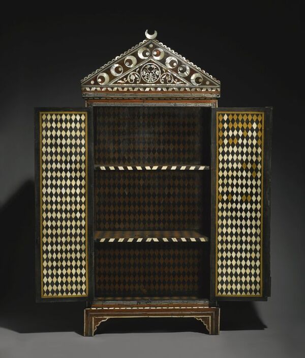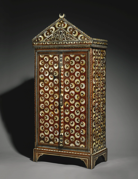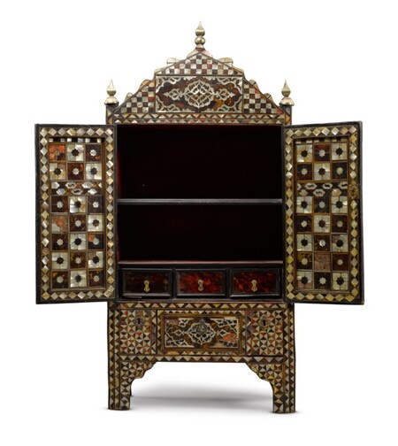 Османский шкаф из черепахового панциря, перламутра и слоновой кости с инкрустацией в стиле чинтамани, Турция, XVII век