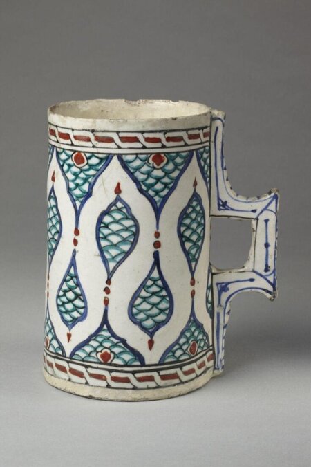 1. Кувшин, Изник, Турция. Около 1715–1740 гг. 2. Кружка, Изник, Турция. Около 1580–1600 гг.