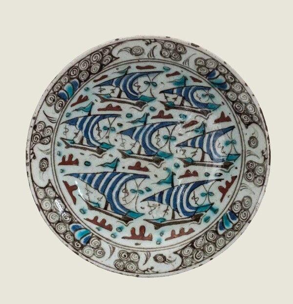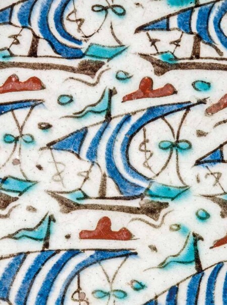 Корабли становятся популярным декором изникской керамики, встречающимся в предметах 16 века. Мотив использовал как треугольные «латинские» и «латиноамериканские» паруса, популярные в Средиземноморье, так и паруса торговых арабских кораблей в Индийском океане.