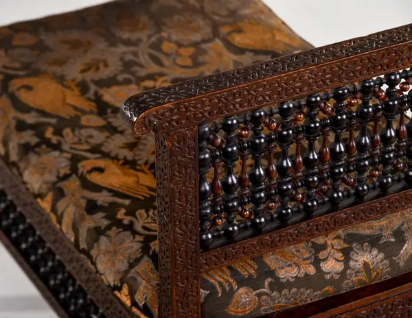 Небольшие шкафы для хранения использовались в конце 18 века. Данный пример также выполнен в технике эдирникаре с элементами резьбы и росписи по дереву.