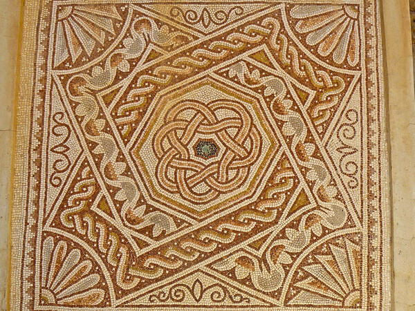 1. Римская мозаика II века в Босре с криволинейными орнаментальными узлами; 2. Мечеть Омейядов (709—715) в Дамаске, Сирия