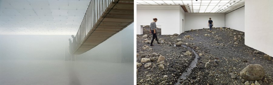 Олафур Элиассон заключил природный пейзаж в выставочном зале в масштабе 1:1. Экспозиционное пространство становится местом естественного созерцания, где природа в ее первозданном виде — и есть объект искусства.