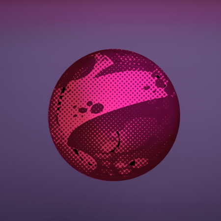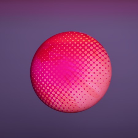 Стилизованный рендер трех сфер с PBR-материалами и розовой штриховкой в тени на фоне циклорамы (Собственноручно созданный материал).