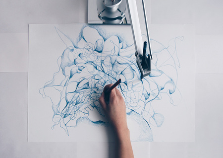 Обратимся к проекту Александра Ребена «amalGAN». Здесь художник выступает в роли своеобразного «селекционера», используя нейросети для создания гибридных образов, балансирующих на грани знакомого и чуждого. ИИ, обученный на словах вроде «цветок» и «собака», генерирует визуальные репрезентации этих «словослияний», порождая причудливые формы. Далее вступает в игру второй алгоритм, анализирующий реакцию самого художника на полученные изображения. Считывая его биометрические данные, ИИ отбирает те «порождения», которые вызывают наиболее сильную эмоциональную реакцию. Этот цикл «генерации-селекции» повторяется до тех пор, пока алгоритм не достигнет «оптимального» результата, удовлетворяющего как художественное чутье Ребена, так и внутреннюю логику машины. Финальный штрих — перенос цифрового образа на холст анонимными художниками в китайской деревне живописцев.