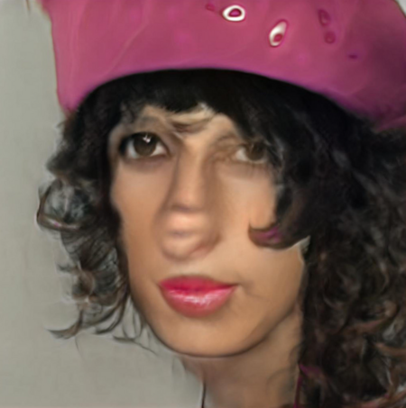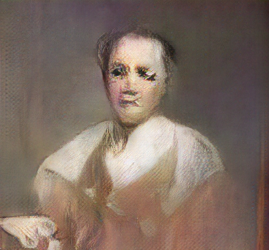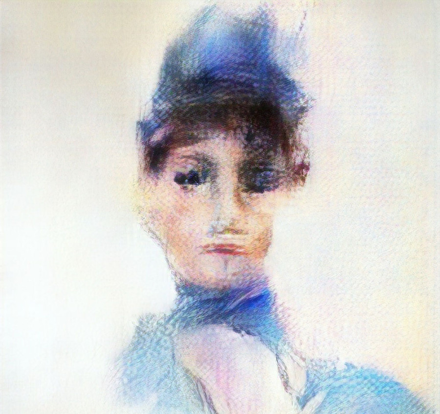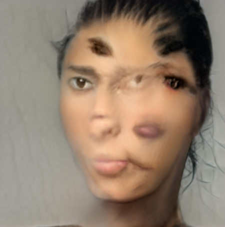 Сибелле Кавалли Бастос в работе «Картинка не может меня запечатлеть» идет еще дальше, превращая GAN-генерацию в инструмент самоисследования и художественной рефлексии над трансформацией собственной идентичности. Используя StyleGAN2, более сложную архитектуру нейронной сети, она обучает ее на архиве своих фотографий, документирующих переход к небинарности и естественный процесс старения. Результат — последовательность генерируемых портретов, которые становятся визуальной метафорой текучести и многослойности «я».