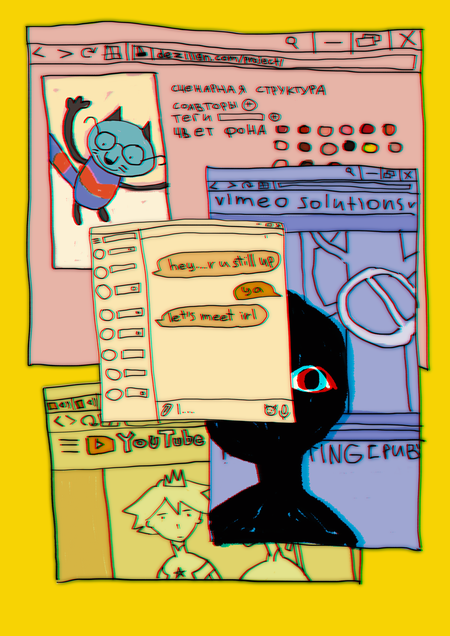 Интересно, что заканчивается короткометражка там же, где начинается. Как и в No Hunting, знакомое по первым секундам анимации пространство несколько изменяется. Теперь героини не подсматривают в окно за соседями, а валяются на матрасе. Однако ощущения окончания или разрешения не возникает, потому что, строго говоря, ничего и не закончилось.