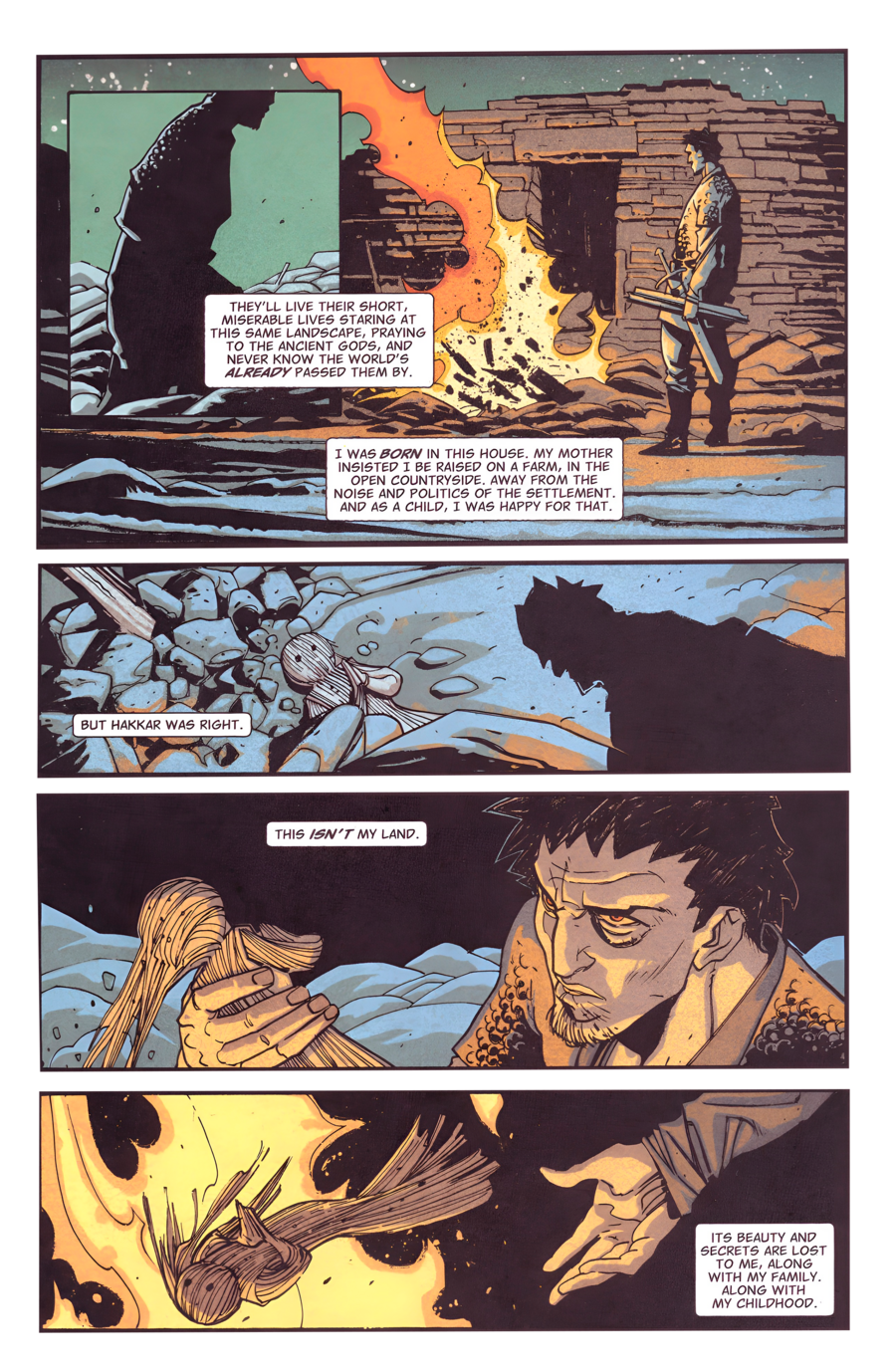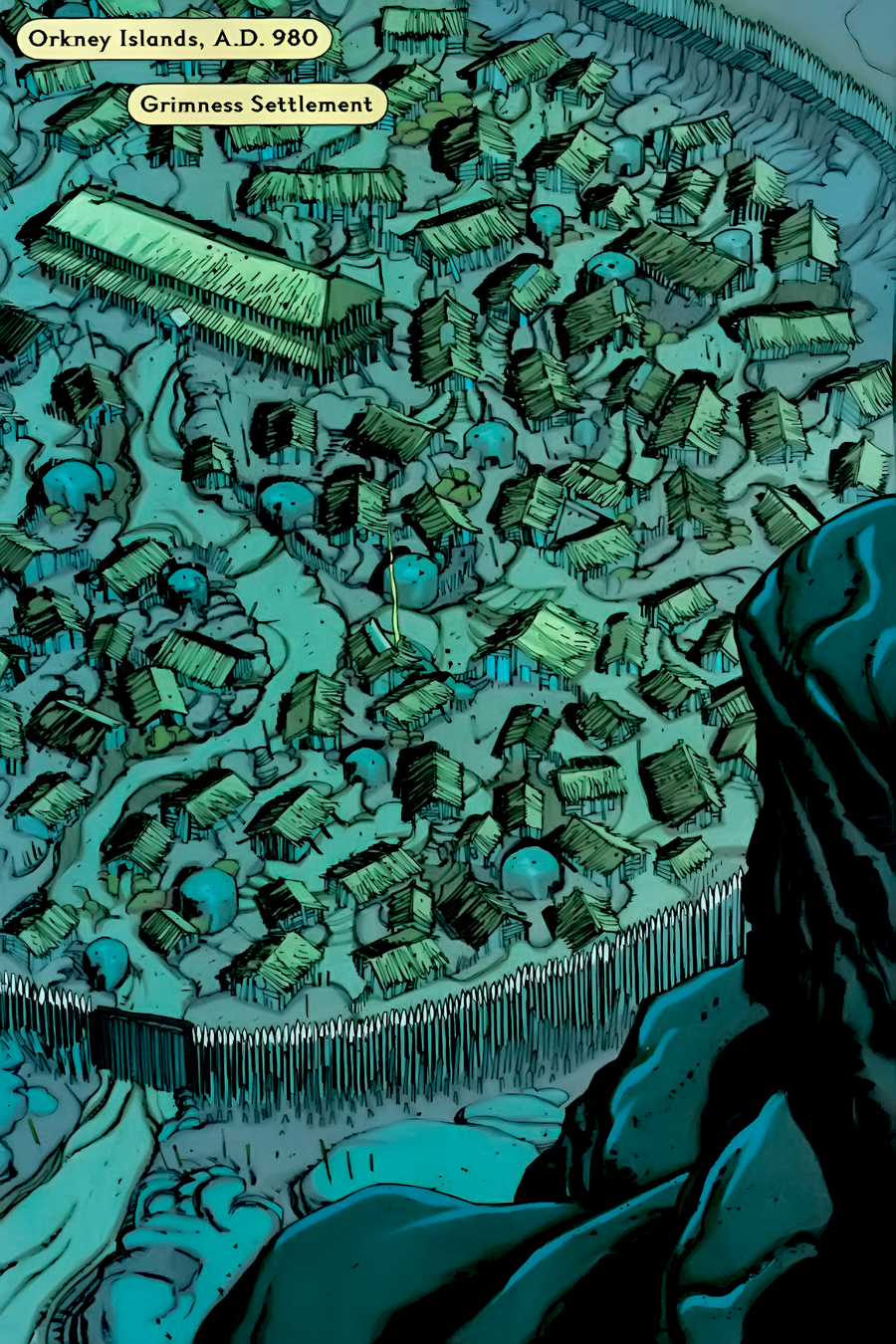 Брайан Вуд в интервью для DC: «Я хотел перенести действие этой в город, или то, что тогда считалось городом, в отличие от поселения викингов, похожего на деревню. Мне нужны были улицы, переулки и открытые пространства. Мне повезло, что я только что вернулся из исследовательской поездки в Осло, Норвегия, и у меня было несколько десятков фотографий старинных домов, которые я сделал в местном музее народного творчества» [13].