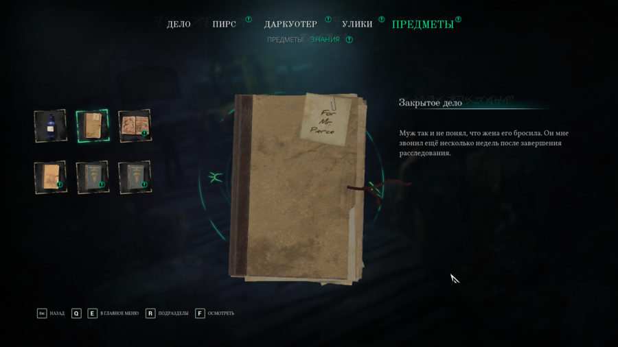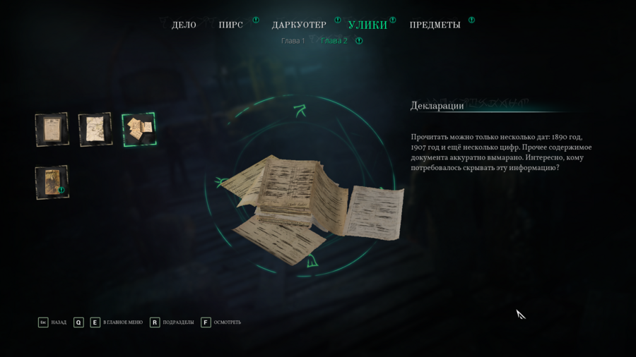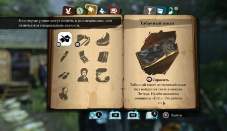 Ни одно детективное расследование не обходится без улик. В контексте игры их можно рассматривать как подсказки, которые наведут игрока на необходимые этапы для развития сюжета, будь то расширение контекста для понимания истории в целом, или прямой наводки приближающей к разгадке тайны.
