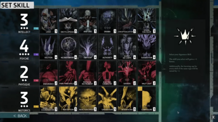 Игра предлагает 24 навыка, разделяемые на 5 групп, которые представляют различные аспекты личности и когнитивных способностей главного героя. Эти навыки влияют на доступные варианты диалога и успешность действий, что моделирует процесс анализа данных и принятия решений.