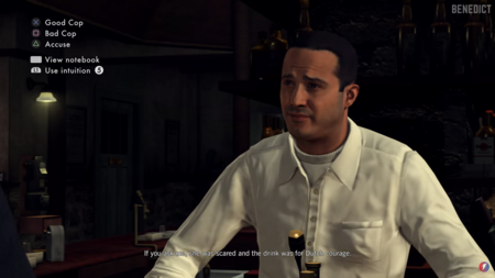 Важная механика — это допросы свидетелей и подозреваемых, где игрок должен следить за выражениями лиц, жестами и голосом персонажей, чтобы определить, говорят ли они правду. L.A. Noire использует технологию захвата лицевой мимики, которая позволяет игрокам замечать тонкие признаки лжи или нервозности, что делает допросы более интерактивными и психологически напряженными.