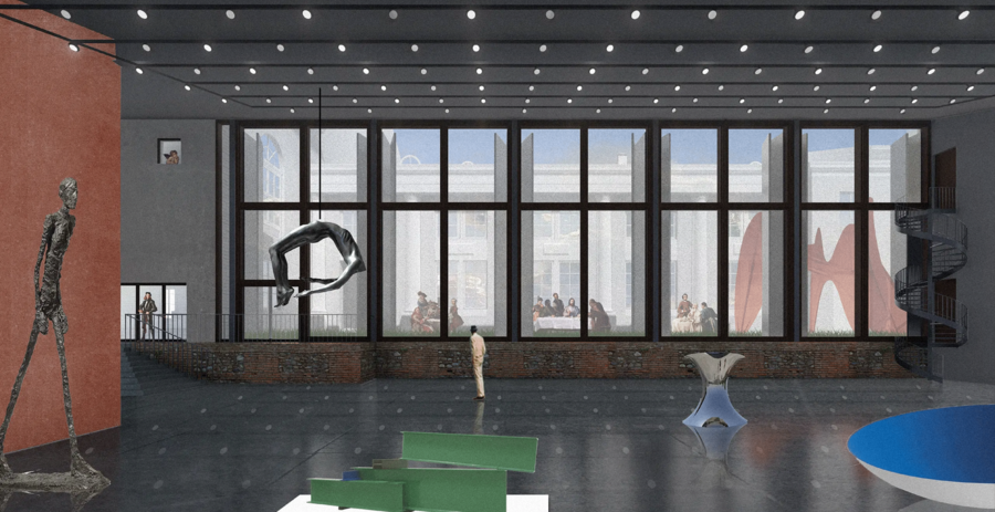 Бюро Treivas Team в своем концептуальном проекте удалось избежать полного разрушения — их задачей было максимальное сохранение главных архитектурных черт старой части здания, и создание новых форм, которые будут подчеркивать существующее и создавать новые сценарии взаимодействия с окружающим контекстом.