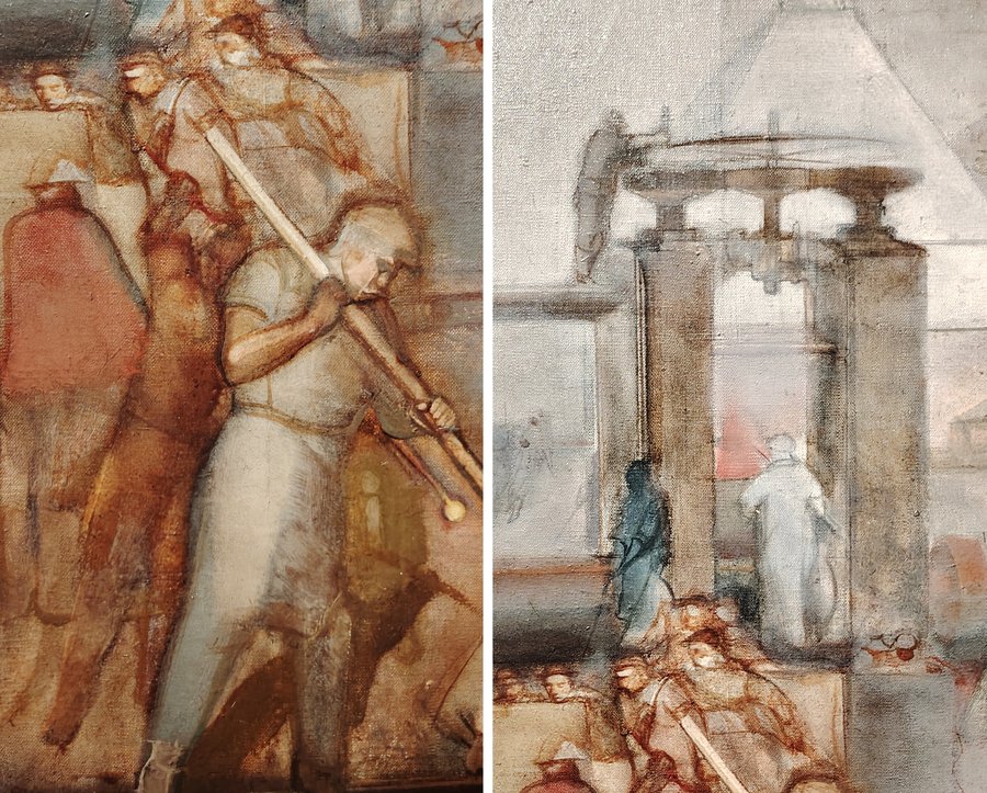 В отличии от картин соцреализма, где визуальный образ труда стал лишь плоским образцом для миметического подражания, в работах художников поставангарда есть искренняя вера в преображающую силу трудового процесса. Но вера эта не слепа: она не приукрашивает действительность.