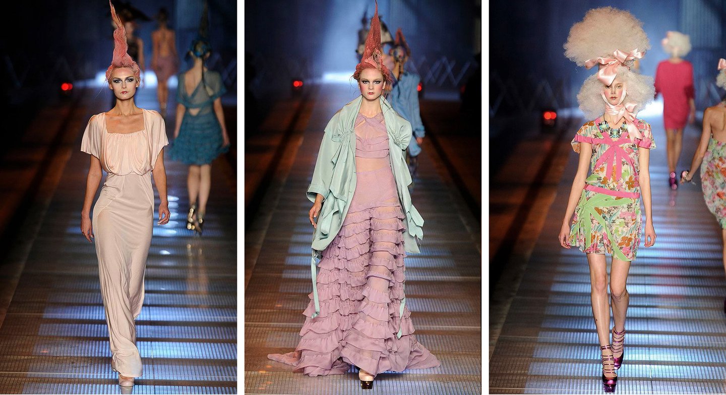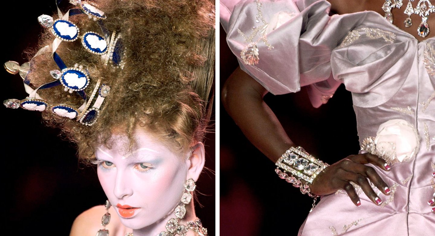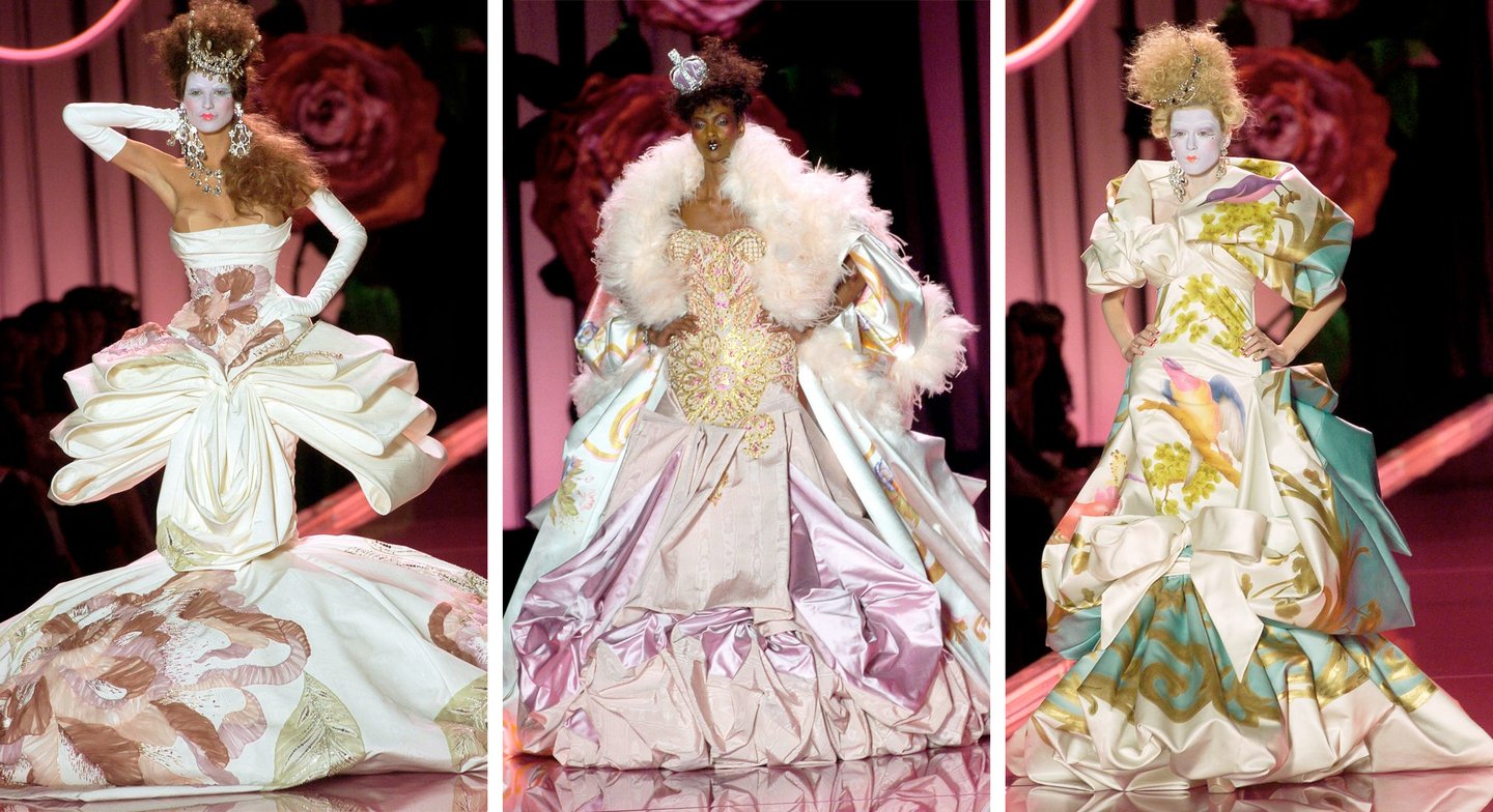 Представленные коллекции пропитаны историзмом, и любовью к архивам, в каждой из которых прослеживается влияние моды французского двора и маркиз рококо. Но все они балансируют на грани актуальной современности, Гальяно уверено сочетает прошлое с настоящим, низкое с высоким и т. д. В коллекции Christian Dior 2002 года, акцент которой выстроен на нижнем белье: чулки, корсеты, флер будуара и платья-комбинации с оборками и бантами, дизайнер совмещает рококо с атрибутикой Y2K.