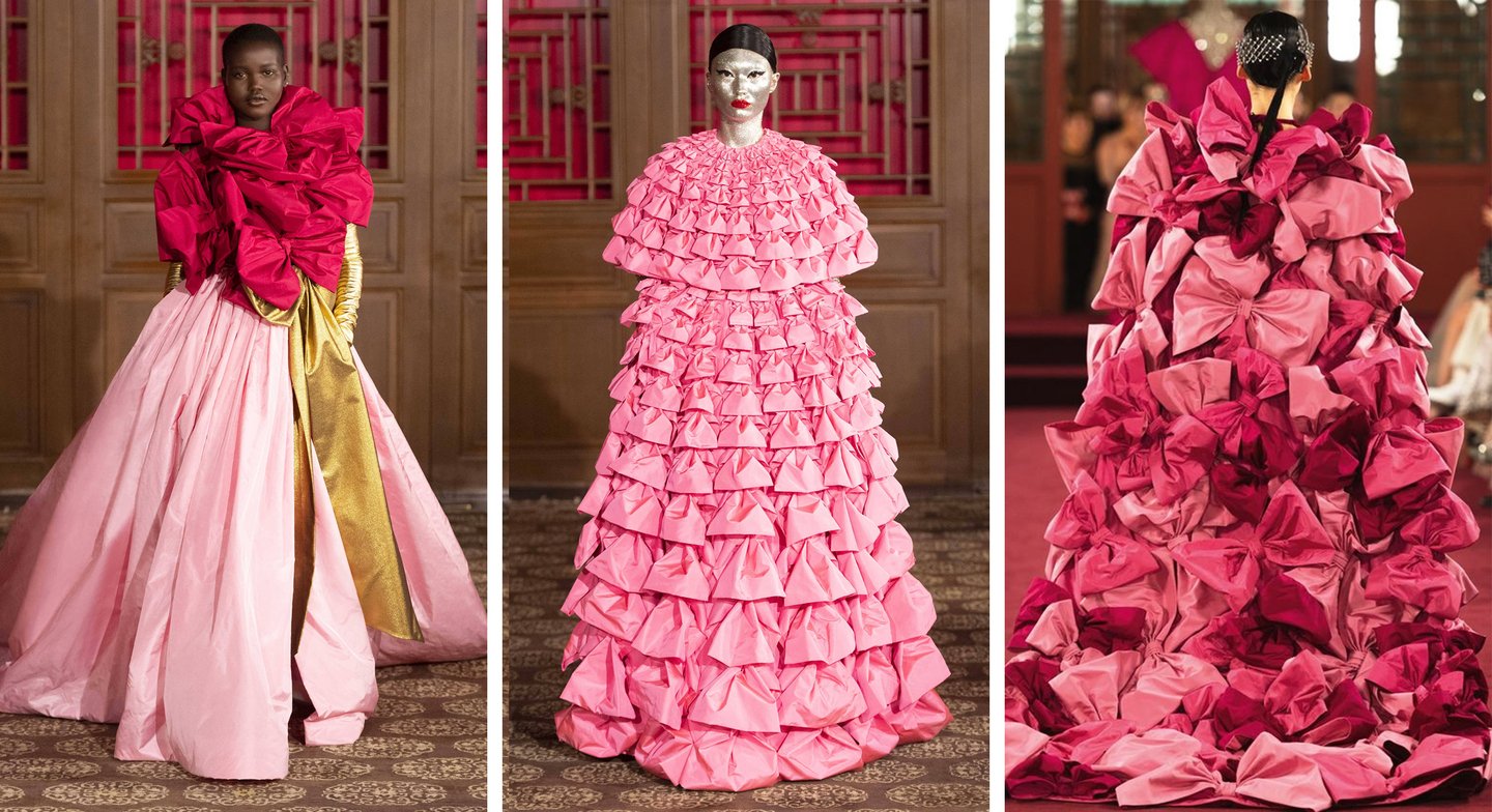 Во многих коллекциях присутствует метод намеренного утрирования деталей, форм и пропорций. Он сравним с той самой чрезмерностью, которую в своих образах использовала Мария-Антуанетта. Например, кутюрная коллекция 2020 Valentino, прошедшая в Пекине.