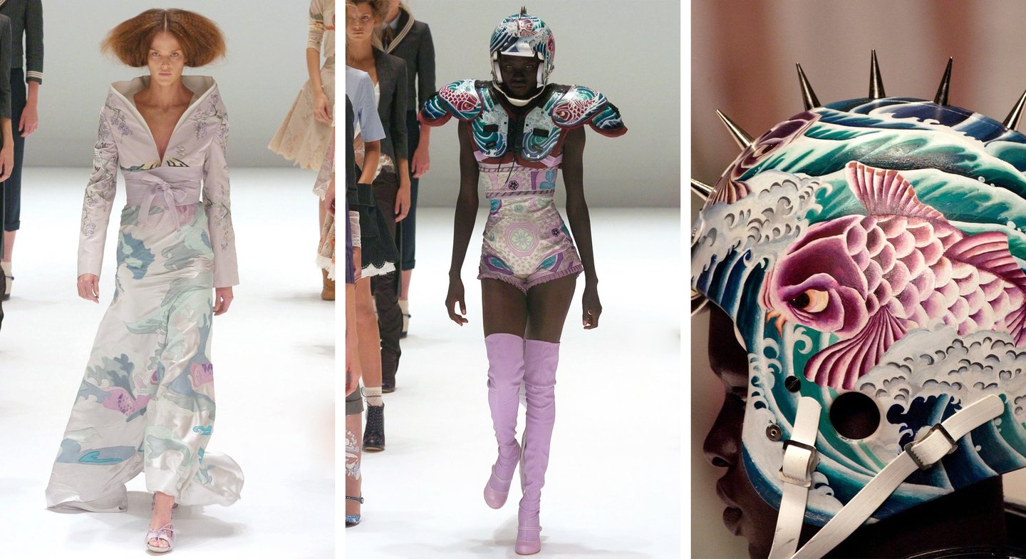 Александр Маккуин в свое коллекции 2005 года совместил костюм XVIII века, японское кимоно и футбольную форму.