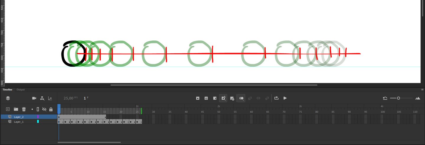 В рисованной анимации существует 12 принципов, которые были сформированы на студии Дисней и используются по всему миру. Это анимационная база. Для тренировки создания покадровой анимации в Adobe Animate мы попробуем взять один принцип на примере круглого объекта, а именно ускорение и замедление. Остальные принципы вы можете изучить в книге «Аниматор: набор для выживания. Секреты и методы создания анимации, 3D-графики и компьютерных игр» от Уильямса Ричарда.