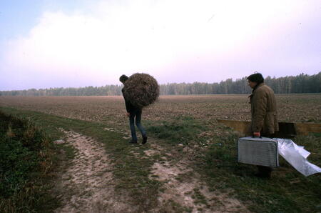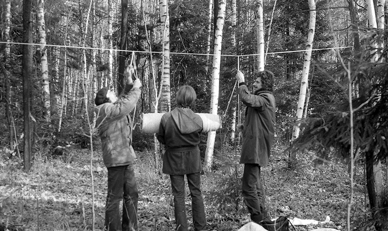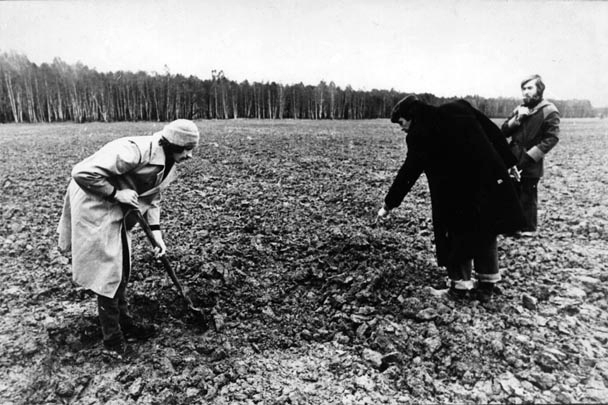 Коллективные действия, акция «Третий вариант», Моск. обл., Савеловская ж-д., поле возле деревни «Киевы горки». 28 мая 1978 г. А. Монастырский, В. Митурич-Хлебникова, Н. Панитков, Н. Алексеев, М. К.