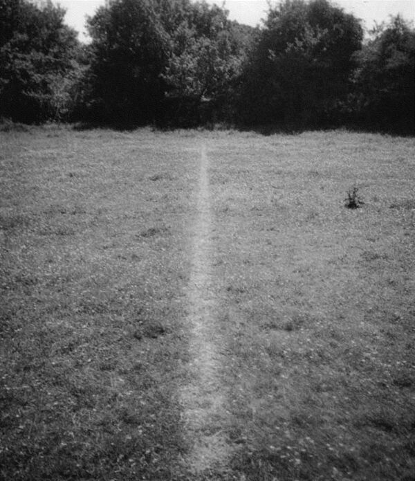 Ричард Лонг, «Протоптанная линия», Англия, 1967 Коллективные действия, «Поездка за город за третьим серебряным шаром для Сабины», Моск.обл., Белорусская ж.-д., ст. «Ромашково», 2I июня 1983 г.