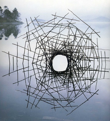Энди Голдсуорси (род. 1965) — английский скульптор и художник, работает с природными материалами, такими как ветви, листья, камни, лёд и снег. Его произведения представляют собой временные, но визуально привлекательные элементы ландшафта, не требующие сложного производства и монтажных процессов. Благодаря балансу создаются объекты удивительной красоты, которые существуют в пространстве без дополнительных искусственных креплений. Однако их жизнь в физическом мире ограничена — после фотографирования они могут просуществовать от нескольких минут до многих лет, что создаёт интригу. Подобно «Артефактам» Инфанте-Араны, произведения Голдсуорси существуют преимущественно на фотографии. Однако в отличие от «Артефактов», которые вступают в конфликт с природой и демонстрируют столкновение натурального и искусственно созданного, работы Голдсуорси гармонично сочетаются с окружающим пейзажем.