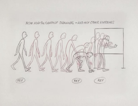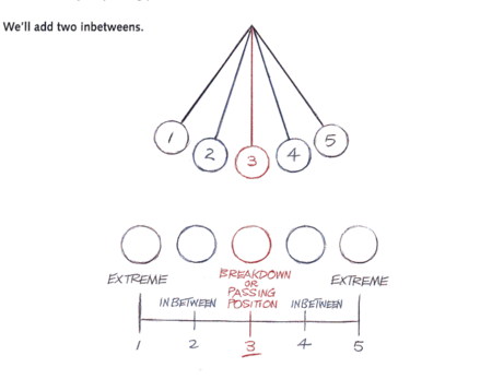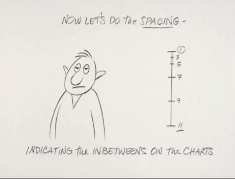 Еще одной темой урока является изобретение «промежуточных кадров» (in—betweens), которое возникло из необходимости более эффективно производить анимацию, создавая ключевые кадры (экстремальные позиции) и делегируя промежуточные кадры ассистентам. Однако работа с ассистентами требует тщательного контроля объема (поддержания пропорций форм), чтобы избежать нежелательных искажений или деформаций между кадрами.