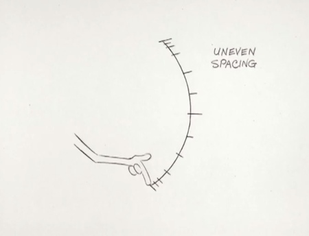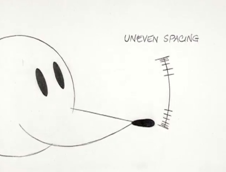 Ошибки в расположении кадров часто приводят к неестественным движениям, и Уильямс демонстрирует, как важно тщательно размещать и слегка корректировать промежуточные кадры, что он называет «осознанным созданием промежуточных кадров».