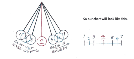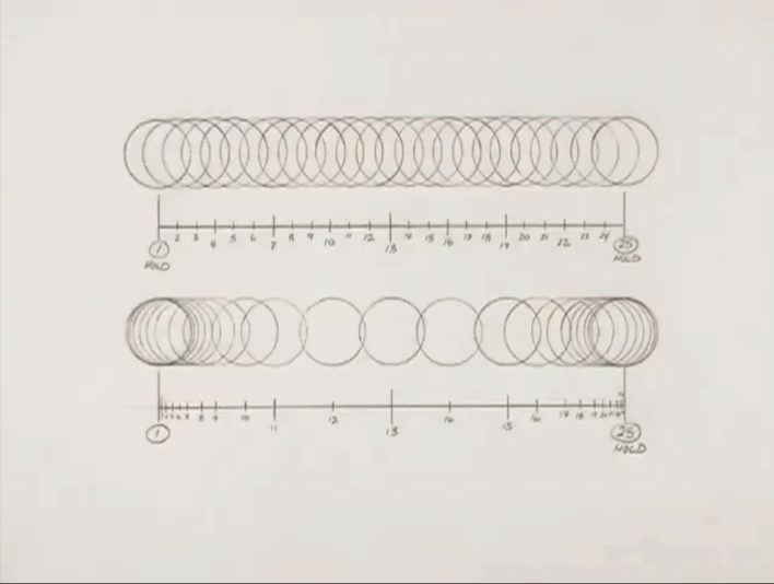 Различные виды расположения могут изменить восприятие веса и материала (например, разница между мягким мячом, боулинговым шаром и шариком для пинг—понга). Затем проводится демонстрация того, как вариации расположения создают визуальные эффекты. Например, с помощью маятника иллюстрируется «замедление в начале и конце» (easing in и easing out) — понятия, которые контролируют плавность переходов объекта из одного положения в другое. Когда больше кадров добавляется в начале или конце движения, создается эффект «смягчения», что делает движение более естественным.