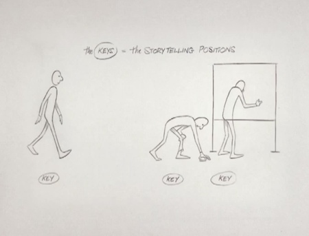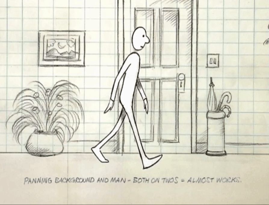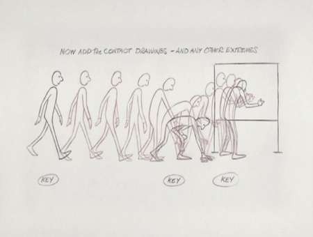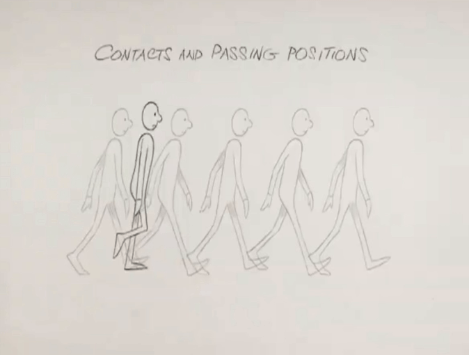 За долгие годы великие аниматоры выработали четкий подход — метод, позволяющий избежать путаницы, как в рисунках, так и в компьютерной графике, и избежать непредсказуемых результатов. Итак, Уильямс начинает с того, что берет простой пример — обычную походку без особых характеристик. Далее разбирает её, начиная с ключевых позиций, а затем — с экстремальных положений.
