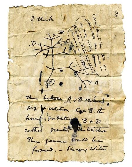 Схема Чарльза Дарвина, 1868 Источник: https://darwin-online.org.uk/graphics/Origin_Illustrations.html