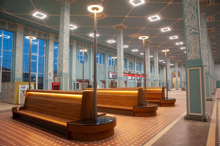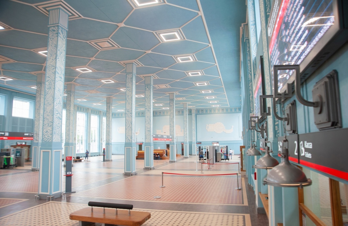 Реконструкция железнодорожный вокзал в Иваново после реконструкции 2020 года. Синий зал.