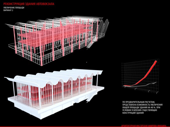 Реконструкция железнодорожного вокзала в Иваново. Конкурсный проект. 1 место (слева). Реконструкция железнодорожного вокзала в Иваново. Конкурсный проект. 1 место (справа).