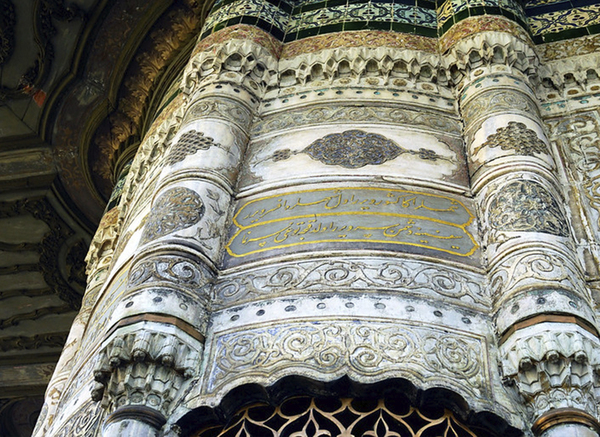По внешнему контуру здания проходит галерея из остроконечных арок айван — характерного элемента исламской архитектуры. Эта форма продолжается в форме арочных окон, украшенных цветными витражами. Решетки витражей составлены из гириха.
