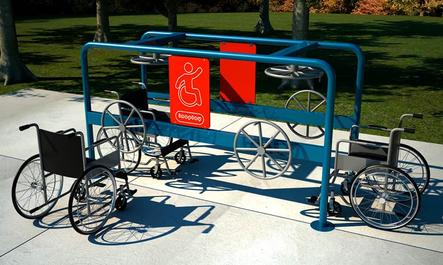 Renders of Exercise equipment for people in wheelchairs of the company «Inoplay».