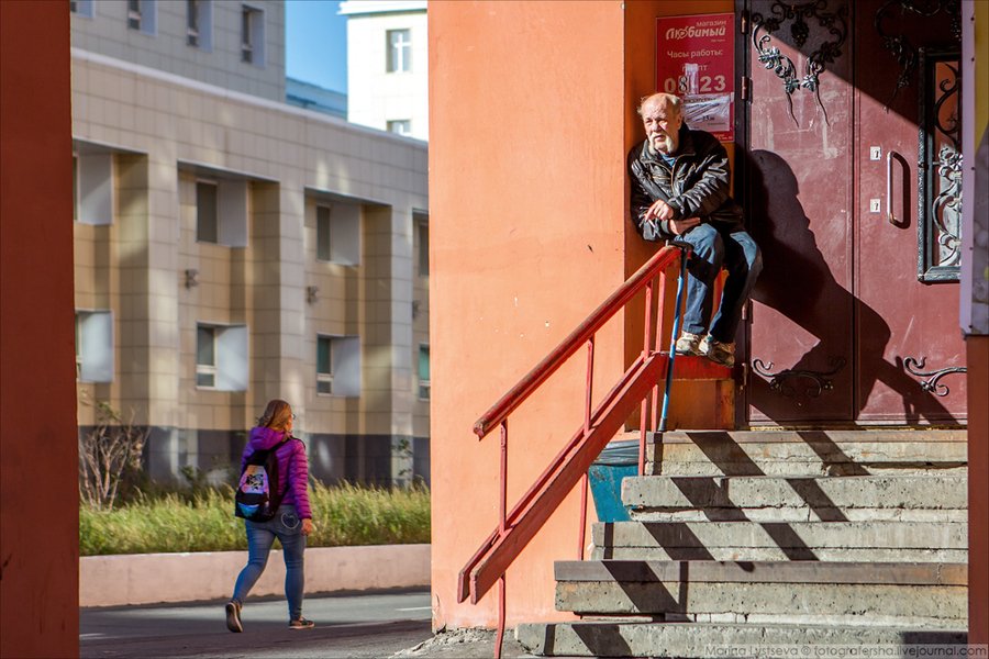 Вечная мерзлота, сильные морозы и обильные сугробы определили его характерную архитектурную полихромию. Однако единой цветовой гаммы для всего города с момента его основания в 1935 году не существовало; цветовые решения, были разработаны только для его центра.