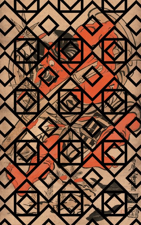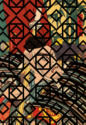 Утагава Кунисада. Актер Итикава Синносукэ IV в роли воина Нагао Сабуро Кагекацу. 1863. Цветная гравюра на дереве. Национальная Парламентская библиотека Японии, Токио
