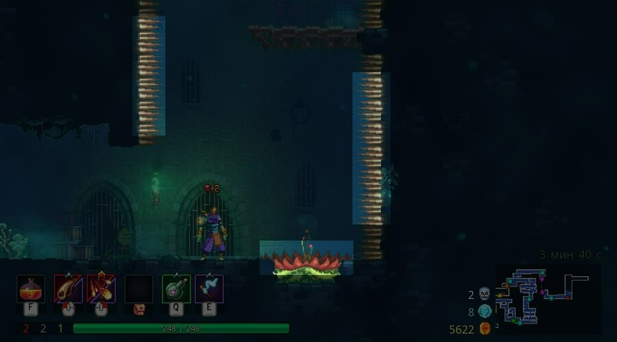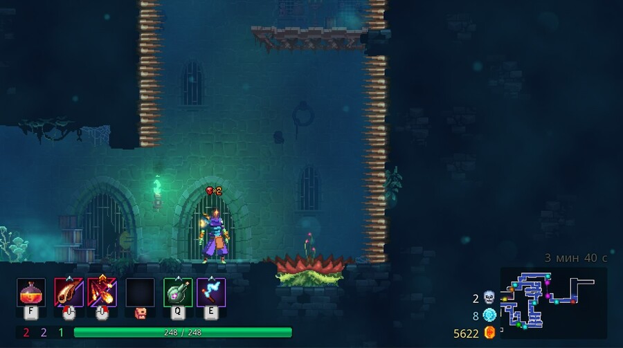 Взбираясь по плющу, можно передвигаться дальше по локации. Перелезать по каменным стенам не получится