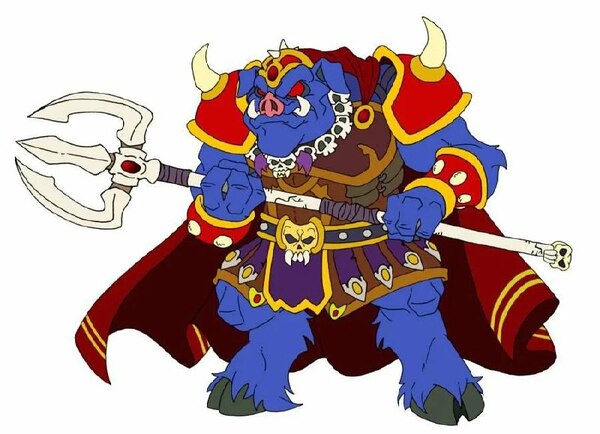 Гибридность: Он и не человек, и не зверь. Он — свинообразный голем. Массивное, мускулистое тело гуманоида сочетается со свиной головой, клыками и когтистыми лапами. Этот образ вызывает отвращение и ужас, подчеркивая его чужеродную и приземленно-животную природу. Он представляет из себя воплощение жадности, обжорства и грубой силы, а это, в свою очередь, идеально ассоциируется со свиньей в западной культуре.