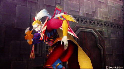 Театральность и жесты: Даже в ограниченной пиксельной графике аниматоры наделили Кефку невероятно экспрессивной пластикой. Его неестественные позы, судорожные смешки, размашистые жесты — всё это создает ощущение, что он не только злодей, но еще и артист, разыгрывающий трагедию в масштабах вселенной. Трансформация в Бога: После обретения божественной силы его дизайн кардинально меняется. Он парит в центре гигантской, похожей на статую конструкции, а его грим и черты лица застывают в ужасающей, неподвижной маске. Это визуальное окаменение отражает его окончательный разрыв с человечностью и превращение в бездушный инструмент уничтожения.