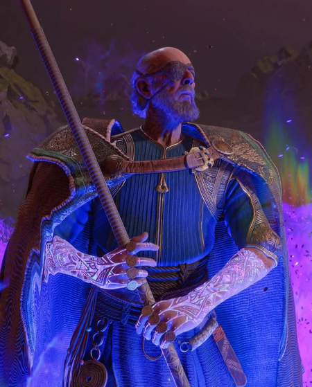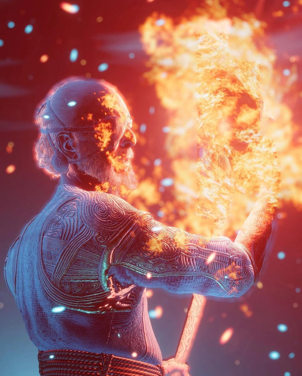 Подрыв мифологии: Вместо величественного, могущественного Всеотца с плащом и копьём, разработчики представили его как старого, невзрачного странника. Он одет в поношенную одежду, его лицо покрыто морщинами. Этот дизайн ломает стереотипы, заставляя игрока усомниться: «И это — царь богов?». Облик «своего парня»: Его главная маскировка — это образ добродушного, немного ворчливого старика. Он появляется как «Странник», пытаясь казаться безобидным и вызывать симпатию. Эта ложная простота делает его гораздо более коварным. Он не внушает страх с первого взгляда, а потому его истинная природа раскрывается постепенно и куда более пугающе. Глаза как источник угрозы: Несмотря на простой облик, его глаза выдают настоящую сущность. Они холодны, проницательны и полны бездонного интеллекта и цинизма. Когда он сбрасывает маску в сцене с Мимиром, его истинное лицо — это лицо безжалостного, нетерпеливого тирана.