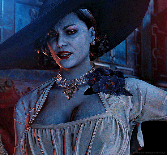 Уязвимость и её визуальное обозначение: — Изначально она неуязвима для пуль Итана. Игрок может лишь ненадолго замедлить её, отстреливая шляпу или лицо. — Её трансформация в драконоподобное чудовище во время финальной битвы — это визуальный сигнал о смене геймплейной парадигмы. Теперь она становится уязвимым боссом, которого можно и нужно убить. Её монструозная форма с крыльями и огромными когтями визуально объясняет её новые, более агрессивные атаки. Замок как продолжение её личности: Дизайн её поместья идеально отражает её характер. Роскошные залы, винный погреб и коллекция изуродованных статуй — всё это визуальные метафоры её изысканного вкуса, жестокости и одержимости вечной красотой. Исследуя замок, игрок через поиск ключей и решение головоломок узнаёт о его хозяйке.