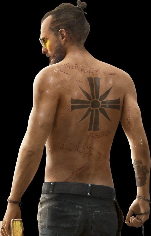 Образ «рабочего» мессии: Внешность Джозефа лишена пафоса. Он носит простую чёрную футболку и джинсы, на его лице — шрам, а тело покрыто татуировками-цитатами из Библии. Этот образ своего парня из глубинки делает его ближе к его последователям и контрастирует с его мессианскими амбициями. Он выглядит не как далёкий папа, а как суровый, знающий жизнь пастор. Татуировки как проповедь: Татуировки — это визуальное воплощение его учения. Цитаты из Священного Писания, нанесённые на его руки и торс, превращают его тело в живую священную книгу. Это постоянное напоминание о его фанатичной преданности своей вере. Глаза и голос: Его самый мощный инструмент — это пронзительный, ледяной взгляд и спокойный, гипнотический голос (озвучка Грега Брайка). Он говорит тихо, но каждое его слово имеет вес. Его взгляд выражает фанатичную убеждённость, смешанную с оттенком скорби о «заблудших» душах.