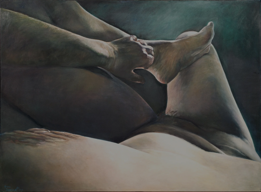 Такую честность можно сопоставить с серией «Самоизображение» Джоан Семмел. Картины художницы запечатлевают ее же собственное тело «ее глазами». На телах с предельной подробностью показаны складки, родинки, волосы, изменения цвета, пигментные пятна, это касается и Джоан Семмел, и ее партнера. Эта серия — ода женскому взгляду на саму себя, в любви с партнером или без него. Это взгляд противопоставлен фетишизации и ретуши, он решительный и сокрушающий за счет ракурса и близости к интимному миру незнакомого человека.